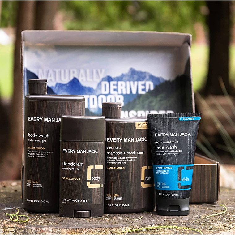 THE PERFECT GIFT FOR EVERY GUY: Every guy will use (and love) one, packed with everyday grooming essentials; a no-brainer gift for you and for him ROUND OUT HIS ROUTINE: Specially designed to cleanse, condition, and hydrate from head to toe; body care set includes Sandalwood Men’s Body Wash, 2-in-1 Shampoo + Conditioner, Aluminum Free Deodorant, and Skin Revive Daily Energizing Face Wash OUTDOOR INSPIRED SCENTS: Inspired by our roots in Marin County, CA and hikes on Mt. Tamalpais, Sandalwood Oil is blended with the earthy, woodsy scent of Vetiver. Subtle notes of Mandarin give a complex, masculine finish.